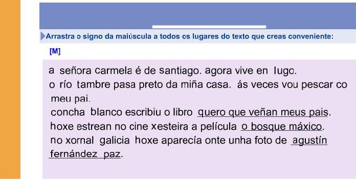 Se non podes facer a actividade no teu dispositivo, realiza a actividade no teu caderno. Copia o texto da imaxe poñendo as maiúsculas necesarias.